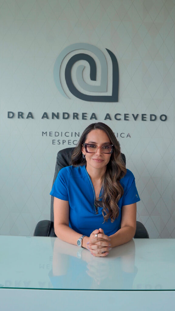 La Dra. Andrea Acevedo es una médica estética de la Universidad del Rosario, con una amplia trayectoria de más de 13 años en procedimientos estéticos, faciales y corporales no quirúrgicos.